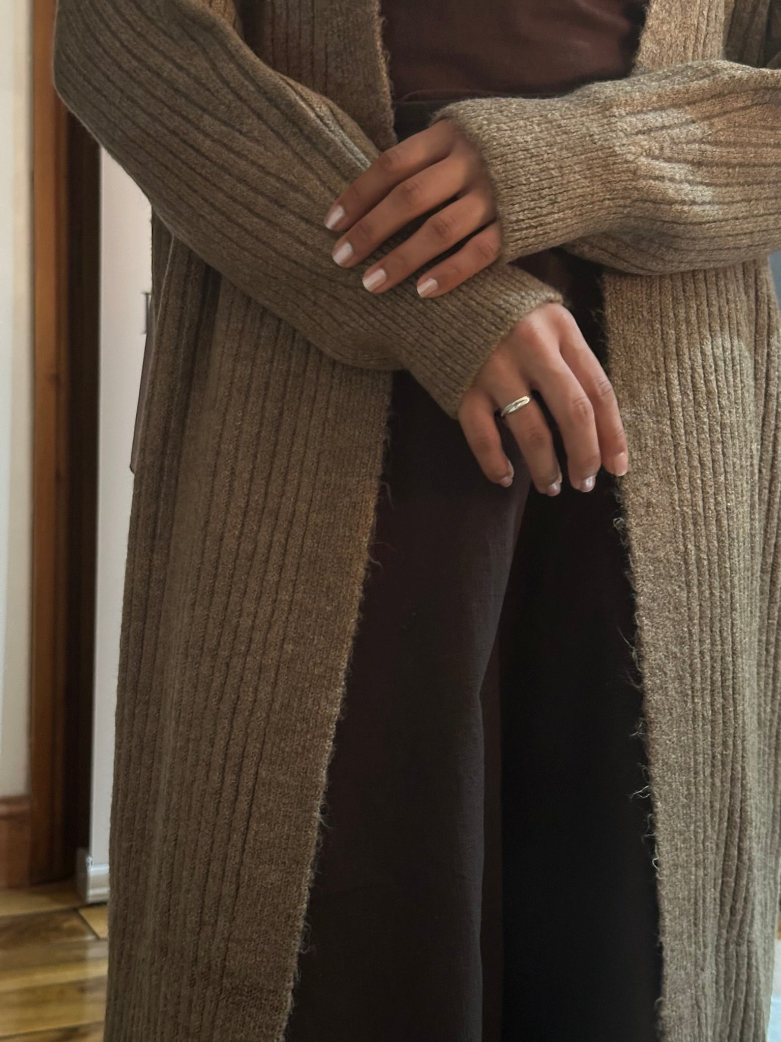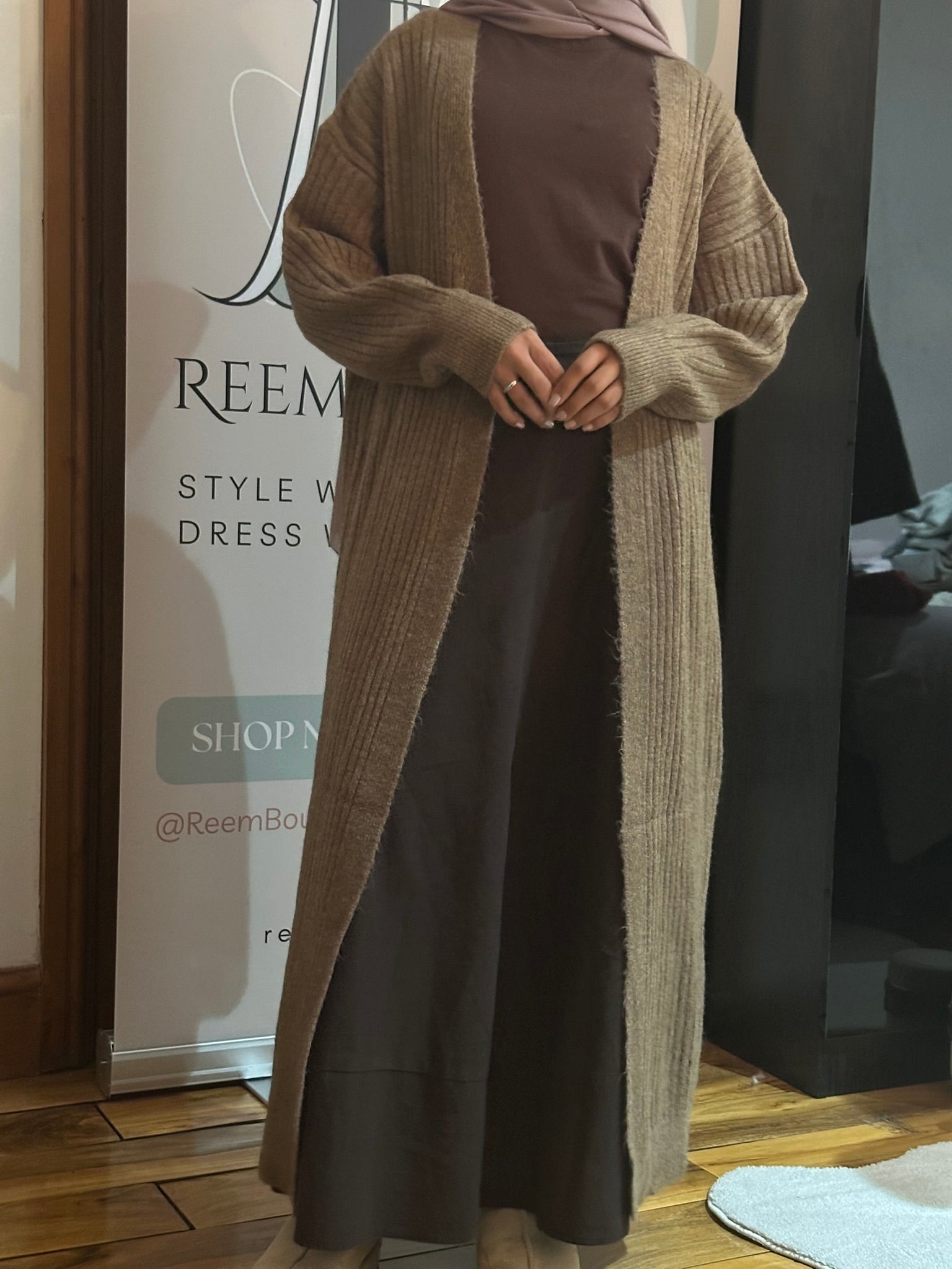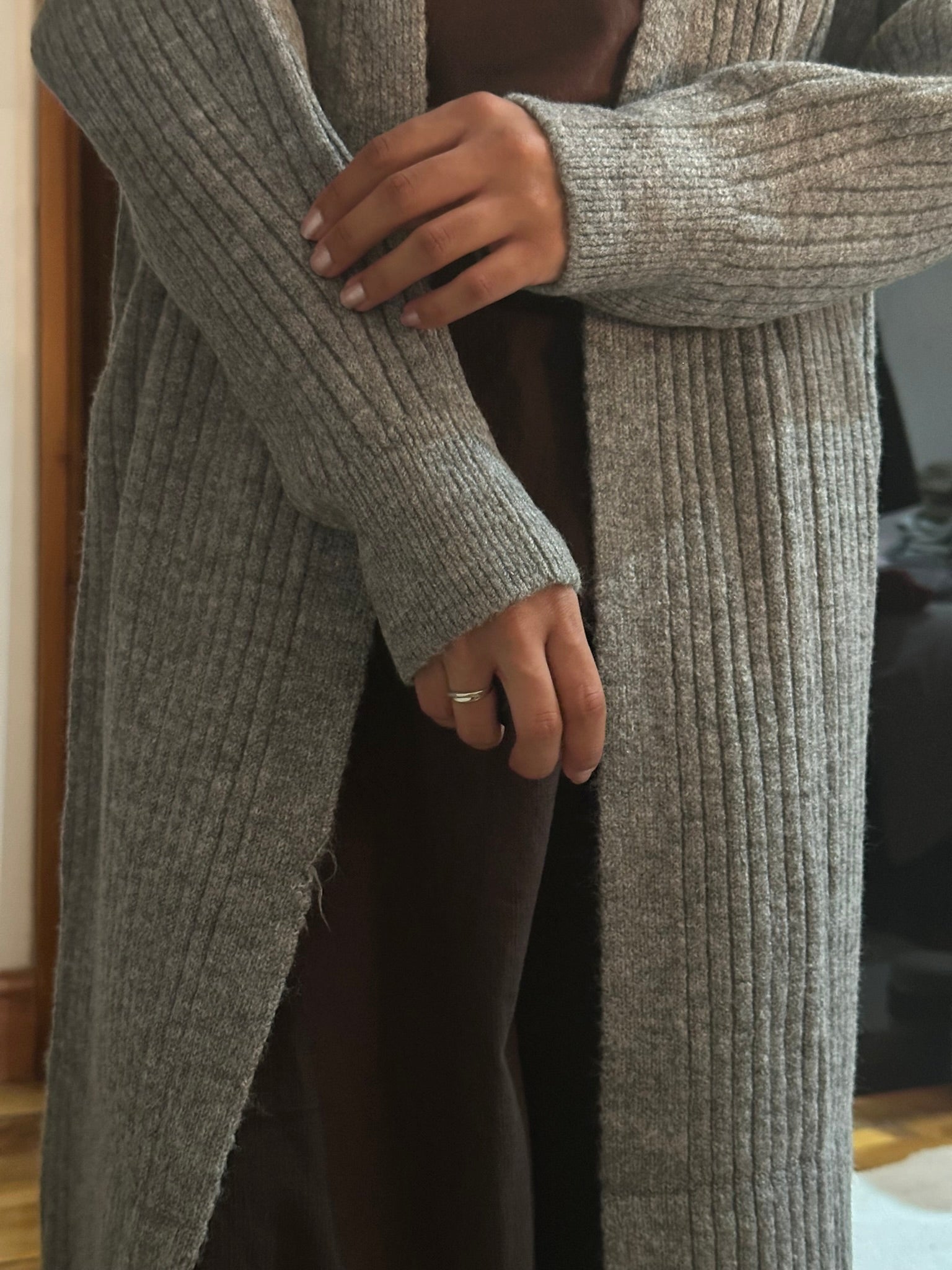 This rib-knitted open cardigan is designed with a relaxed drape that layers beautifully over any outfit. The textured rib finish adds subtle depth, while the open front keeps the look clean and refined. Perfect for everyday wear, work or layering on cooler days, it brings comfort and understated elegance to your wardrobe.